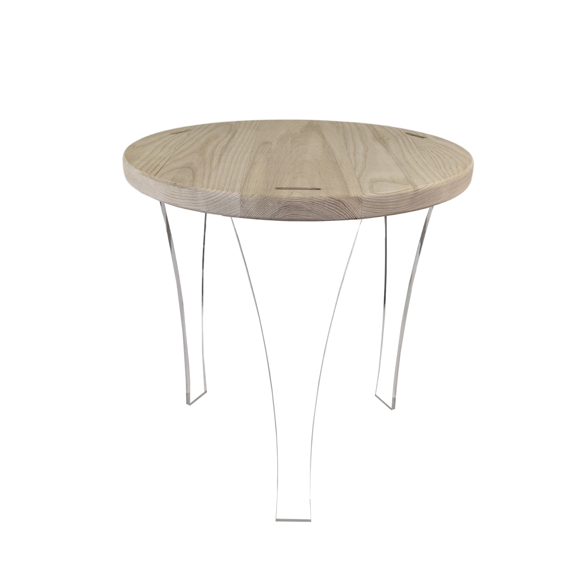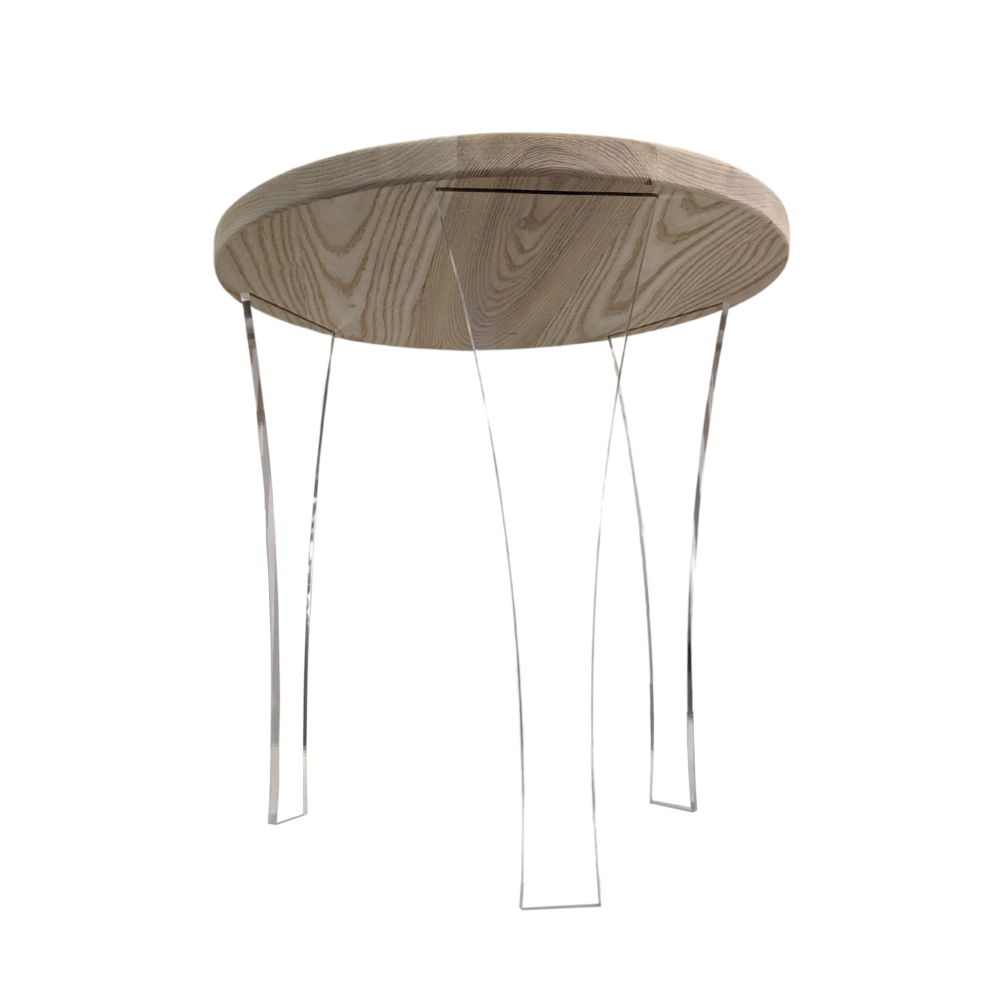 The AIR End Table is a compact yet stylish addition to your living space. It's perfect for small corners or alongside your favorite chair. Crafted with a locally sourced White Ash table top and 100% recycled acrylic legs, available in clear or white, this table embodies eco-conscious elegance. Proudly made in Minnesota, USA, the AIR End Table not only enhances your decor but also reflects your commitment to sustainable living. Elevate your space with the AIR End Table, where impeccable design meets environmental responsibility.