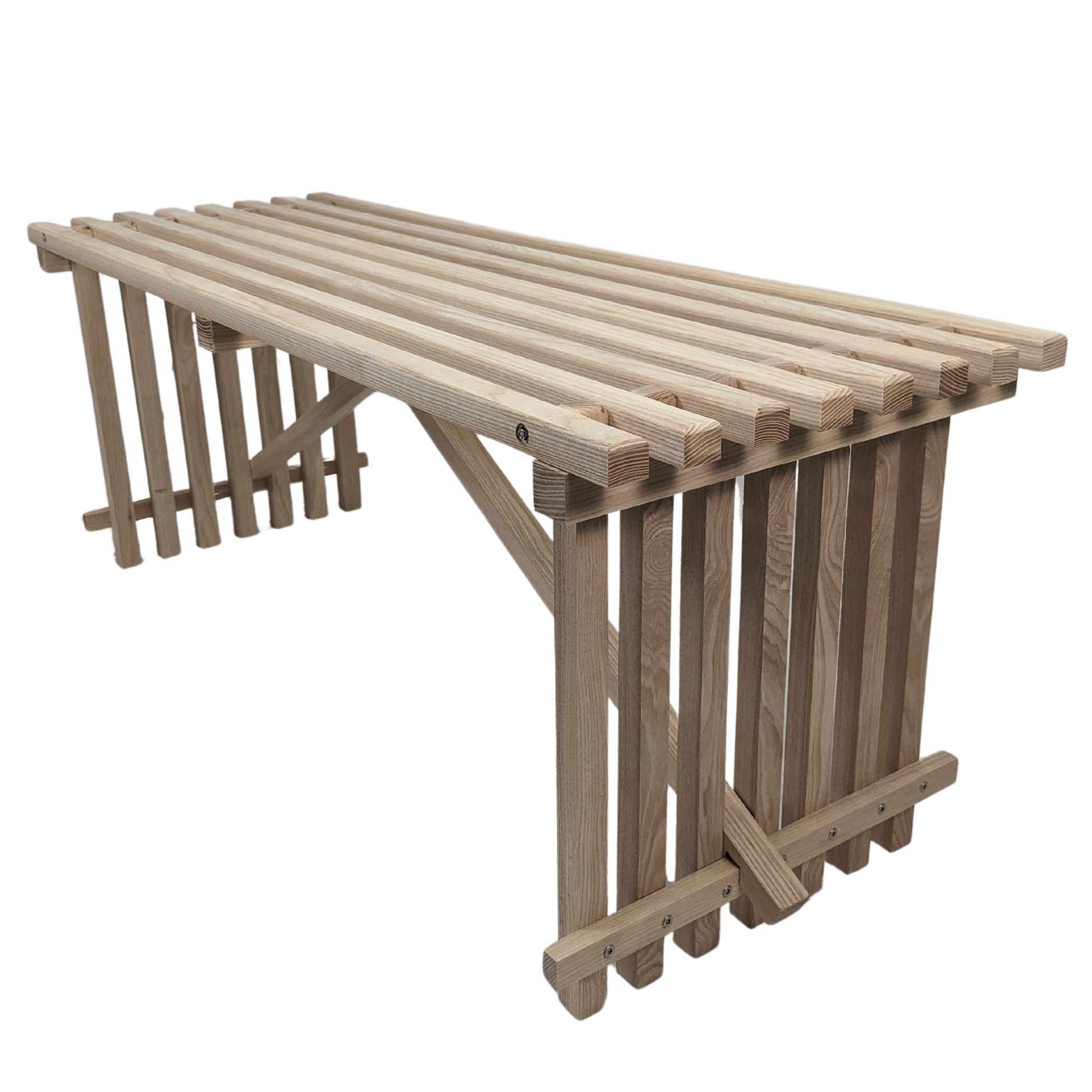 - Foldable Legs: The FJORD Bench is designed with convenience in mind. Its legs fold flat, allowing for easy transport and compact storage. Whether you're heading to the beach, camping, or simply moving it around your backyard, this bench offers unmatched portability and versatility.