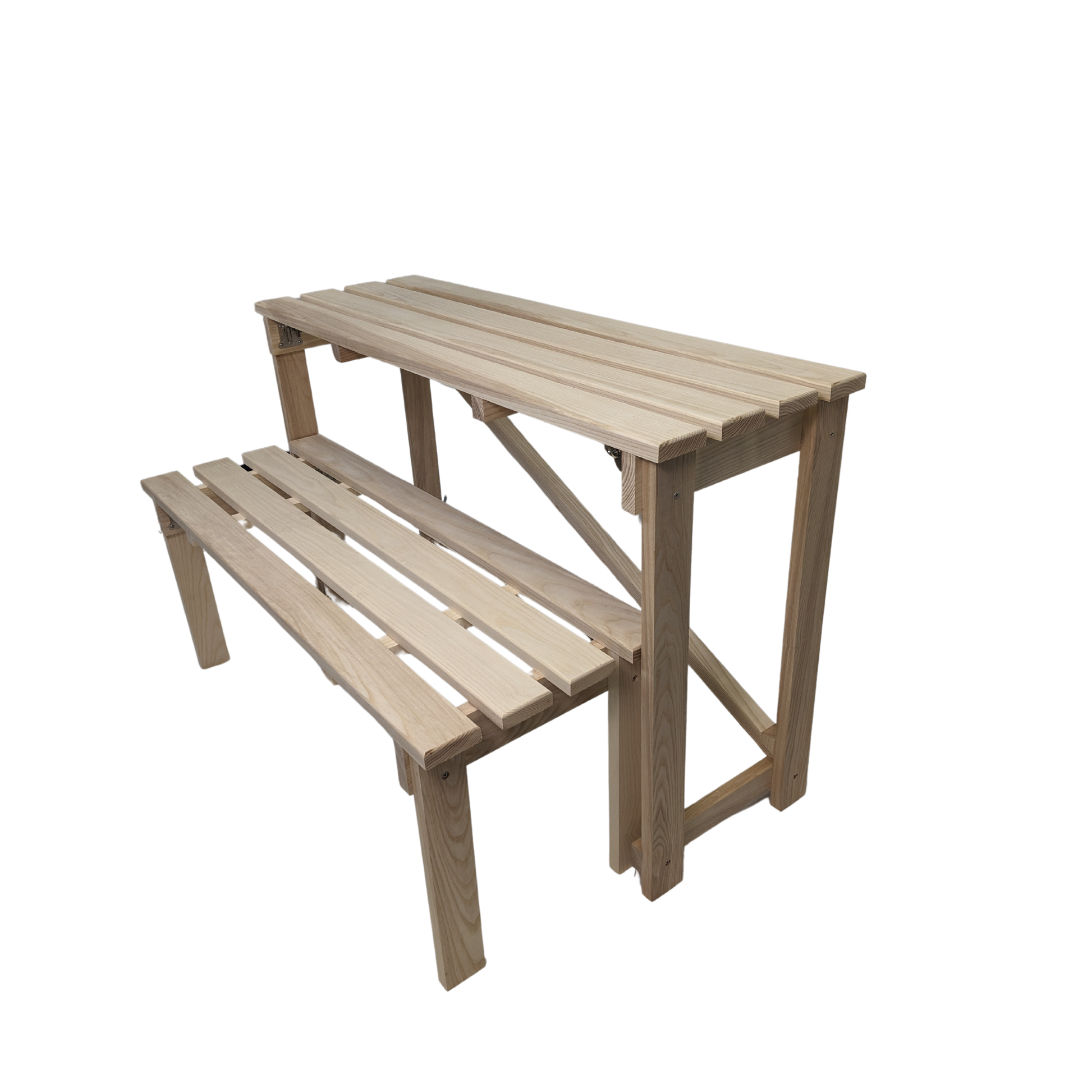The NOMAD Two Level Sauna Bench Set, a pinnacle of comfort and convenience designed to elevate your sauna experience. This unique design provides two levels for ultimate comfort and convenience. Take your sauna experience to the next level with our versatile and portable benches.