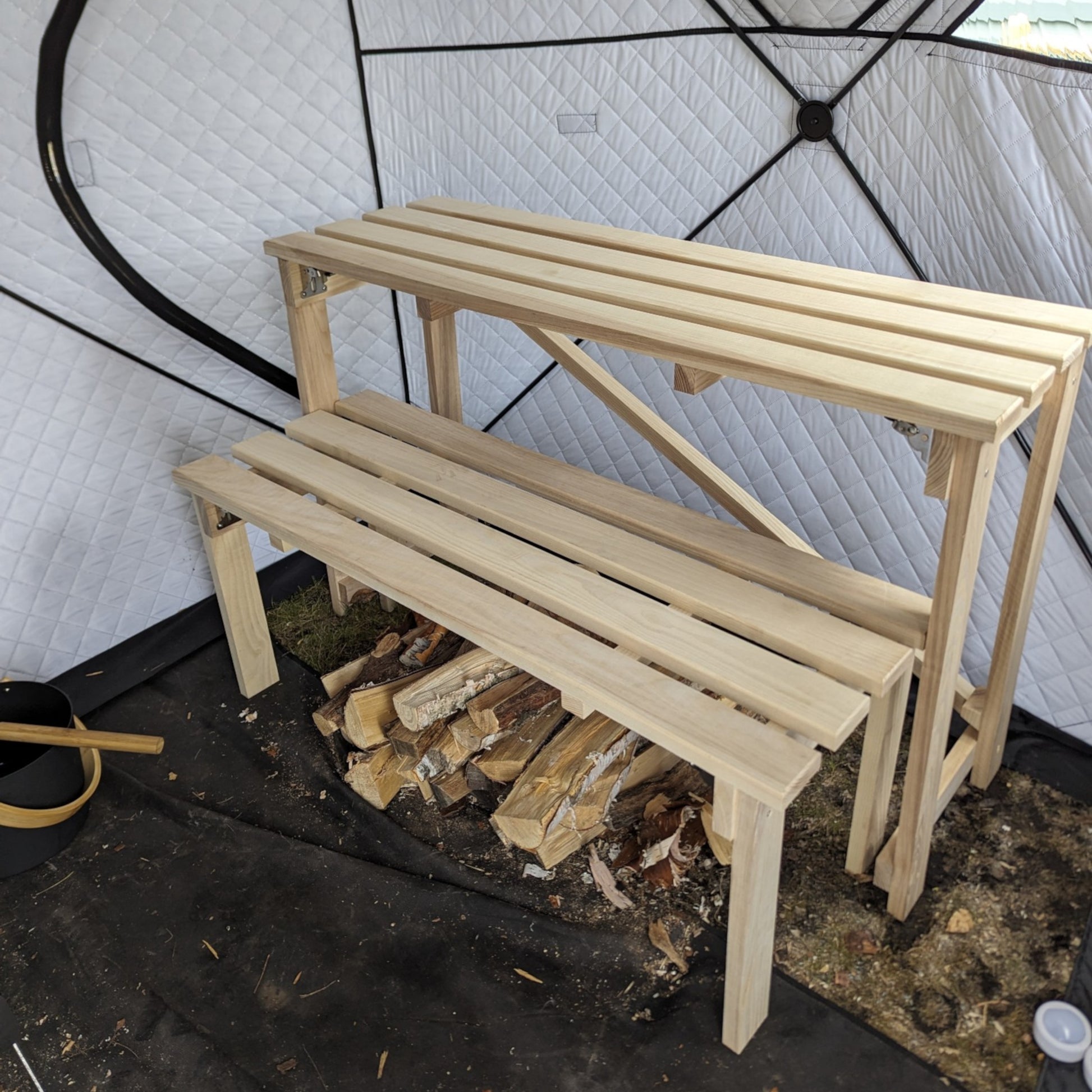 Utilize a portable Two-Level Sauna Bench that you can take with you anywhere you go. The legs fold flat for transport and storage. Available in locally sourced White Ash or Red Cedar. Our benches are custom made in Minnesota and ship within seven business days of your order.